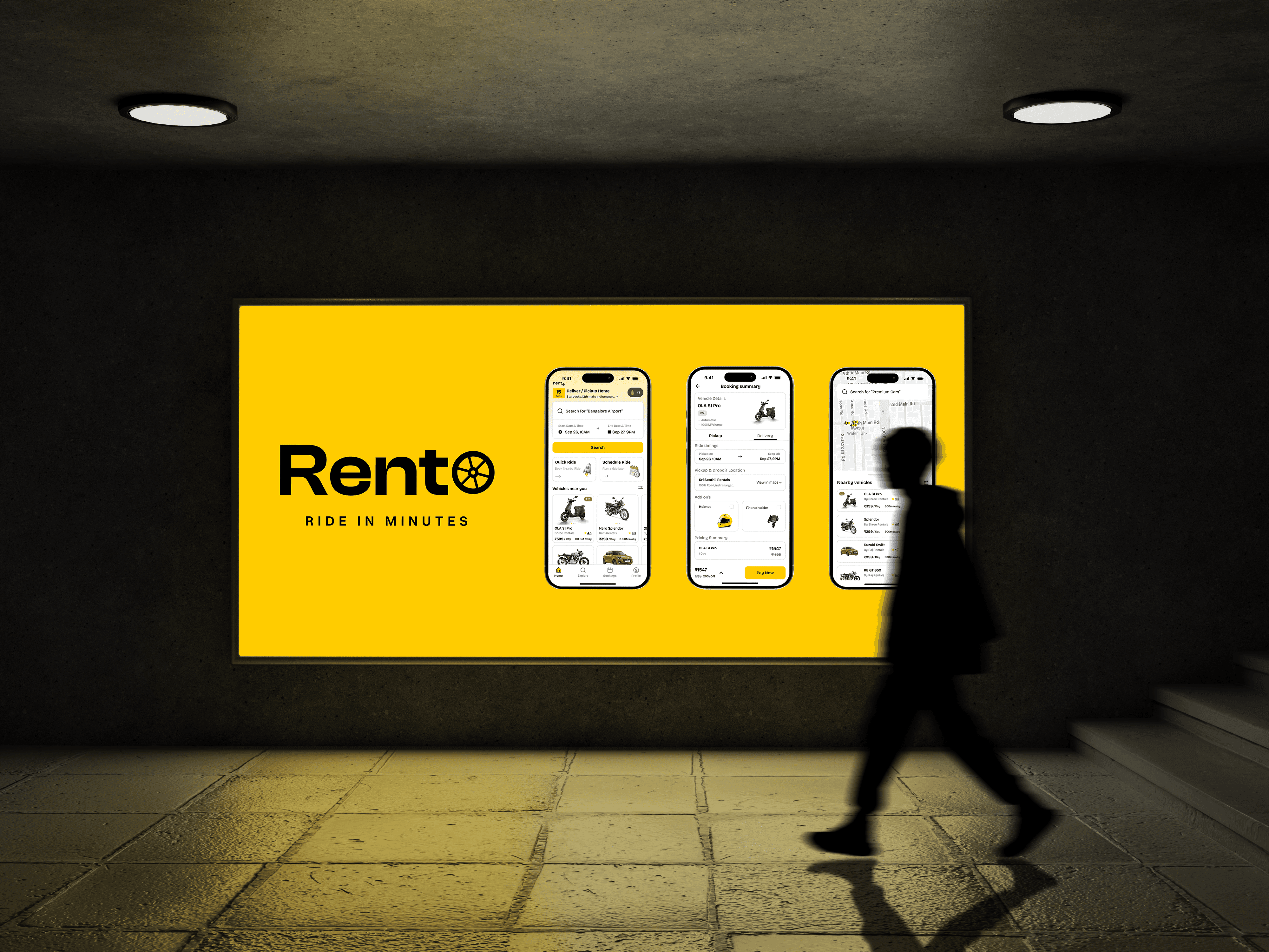 The goal is to design an experience that lets users discover, book and manage rentals with confidence. Rento focuses on speed, clarity and real time availability. Users can book bikes, cars and EVs without switching apps while verified dealers handle inventory, pricing and support. The goal was to create a system that supports both B2C customers and B2B partners through one clean and connected interface.